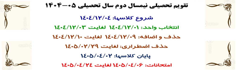 تقویم تحصیلی نیمسال اول سال تحصیلی ۰۴- ۱۴۰۳