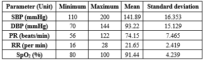 Table 2. Distribution of vital signs among the study population